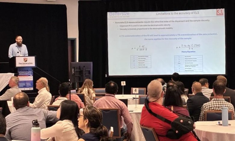百特美国团队的两位专家在会议上发表了专题报告:Kiwan Park分享了《为何将激光衍射与图像分析结合,正在成为颗粒表征的新标准》,Matthew McGann则围绕《DLS、SLS与ELS技术数据质量研究》展开深入解析。两场报告内容详实、视角前沿,不仅受到现场专家的高度关注,也充分展现了百特在微米级和纳米级颗粒表征方面的技术积累与应用能力、/p>