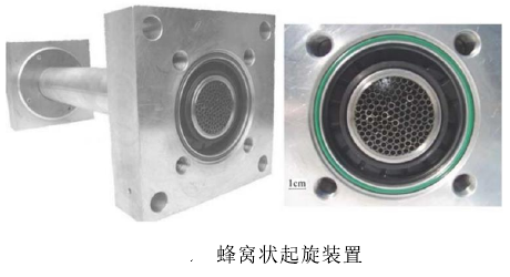 M.Pashtrapanska等设计了一种蜂窝状起旋结构的起旋装置,其原理是在输送管道中通过布置一定数量和一定螺旋排列的细管,当气流通过时引导气流形成旋流、/p>