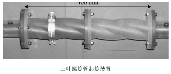 S.Fokeer等使用的起旋装置整体呈麻花状,通过管壁对气流的约束作用形成旋流,两端通过法兰与输送管道连接,可安装在输送管道的任意位置处、/p>