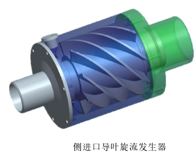 在国内,周甲伟等开发了一种侧进口导叶旋流发生器,该旋流发生器主要由进气管、一对法兰、壳体、导叶管和出水管组成。轴向流(气体或气固混合物)通过入口进入旋流发生器,切向流从壳体侧进口进入,在螺旋叶片的引导下产生切向气体运动。旋流与轴向流和切向流结合,从出口流出。旋流强度是通过切向流和轴向流的比值设定来控制、/p>