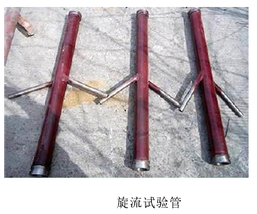 李建平等设计了一组旋流试验管,由一根主输送管和两根辅助旋流管(旋流发生器)组成,副旋管周向与主输送管相切,与轴向?5°角。旋流管前段直管用于稳定气流,后段直管用于观察旋流对颗粒气力输送的影响、/p>