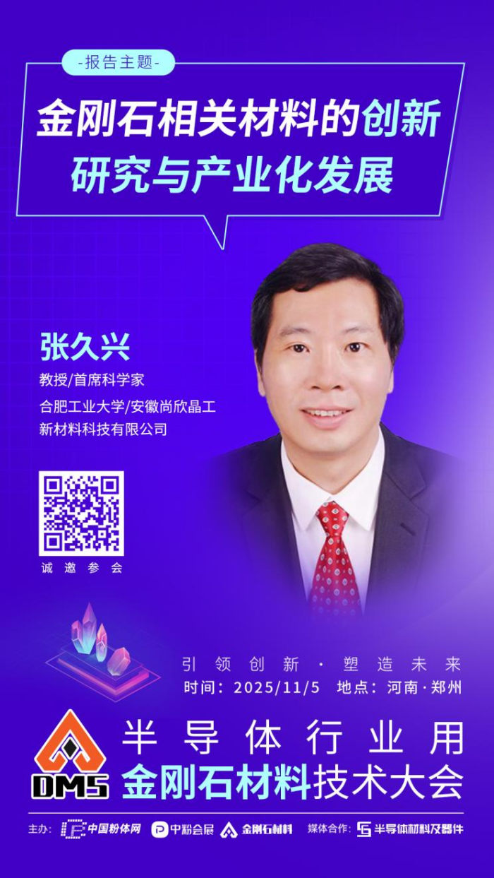 2025?1?日,中国粉体网将?span style="color: rgb(192, 0, 0);">河南?郑州举办‛span style="color: rgb(192, 0, 0);">2025半导体行业用金刚石材料技术大伙/strong>”。届时,我们邀请到合肥工业大学张久兴教掇/strong>出席本次大会并作题为〉strong>金刚石相关材料的创新研究与产业化发展》的报告,报告将阐述SPS独特烧结机理和效应,分析SPS技术在高新材料研究中的优势和产业化可行性,系统介绍金刚石二级增压用特种硬质合金、金刚石-金属复合材料的研究进展与未来展望、/p>