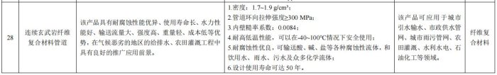 新版目录共包?7项技术和产品。其中,多项非金属矿物功能材料入选,推广应用前景良好。包含:土壤污染治理矿物功能材料、连续玄武岩纤维复合材料管道、二氧化硅绝缘电缆、高性能耐火材料、高导热金刚石金属复合材斘/span>。另外,多项非金属矿选矿、提纯、应?/span>技术入选,为推动建材产业绿色、高端、可持续性发展助力。包含:工业矿物精细分级提纯工艺技术、非金属矿物深度提纯超导磁选装备与技术、共伴生含氟矿物氟资源回收利用工艺技术、预水化膨润土防渗卷材技术、/span>