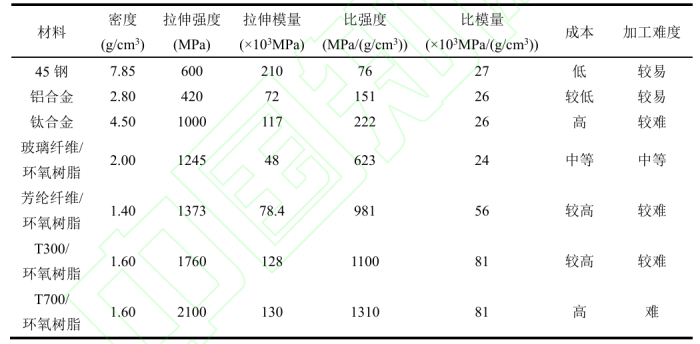 常用于人形机器人的复合材料与传统材料性能比较 来源:《复合材料在人形机器人中的应用进展与趋势》(熊健等)
