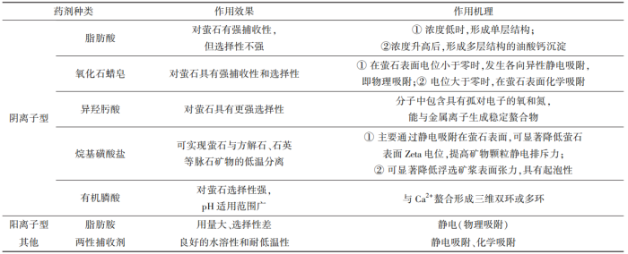 根据极性基团的种类,萤石浮选所用的捕收剂可分为三大籺阴离子型、阳离子型和其他捕收剂、/span>