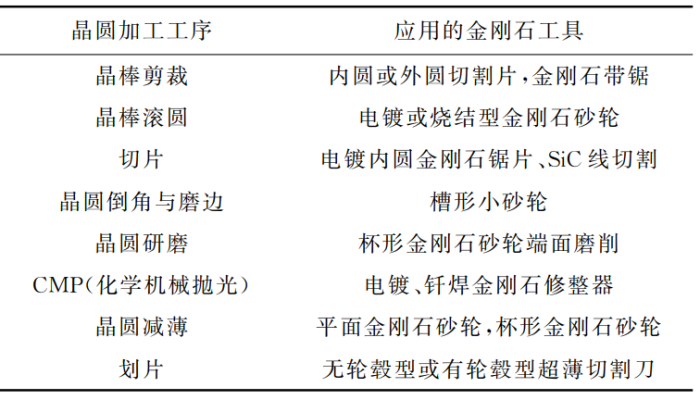 半导体的加工技术是芯片制造的基础,也是国家高端装备和先进制造技术水平的重要标志之一。半导体加工是从晶棒到单个芯片的过程,金刚石工具在这一过程中起着至关重要的作用,如晶棒剪裁、晶圆减薄、划片等、/p>
