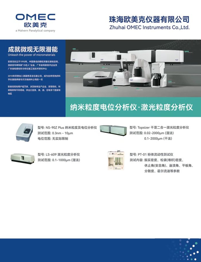 珠海欧美克仪器有限公司为拥有众多知名跨国企业的英国思百吉集团成员,同时也是科学仪器制造商马尔文帕纳科公司的一员。欧美克结合集团先进的研发管理理念与强大的技术支持,为客户提供优质的粒度检测产品与服务,主要包括激光粒度分析仪、纳米粒度电位分析仪、电阻法颗粒计数器、颗粒图像分析处理仪、动态图像仪和粉体特性测试仪等六大系列产品、/p>