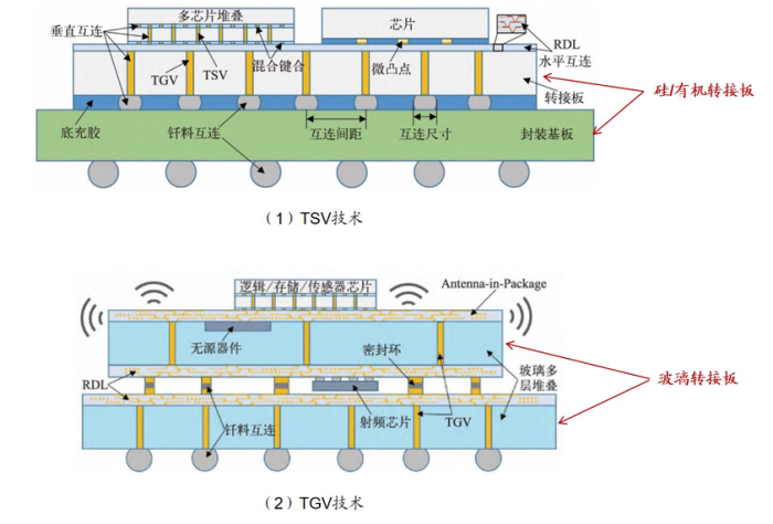 TSV与TGV技术对 来源:《芯片三维互连技术及异质集成研究进展》(钟毅等)