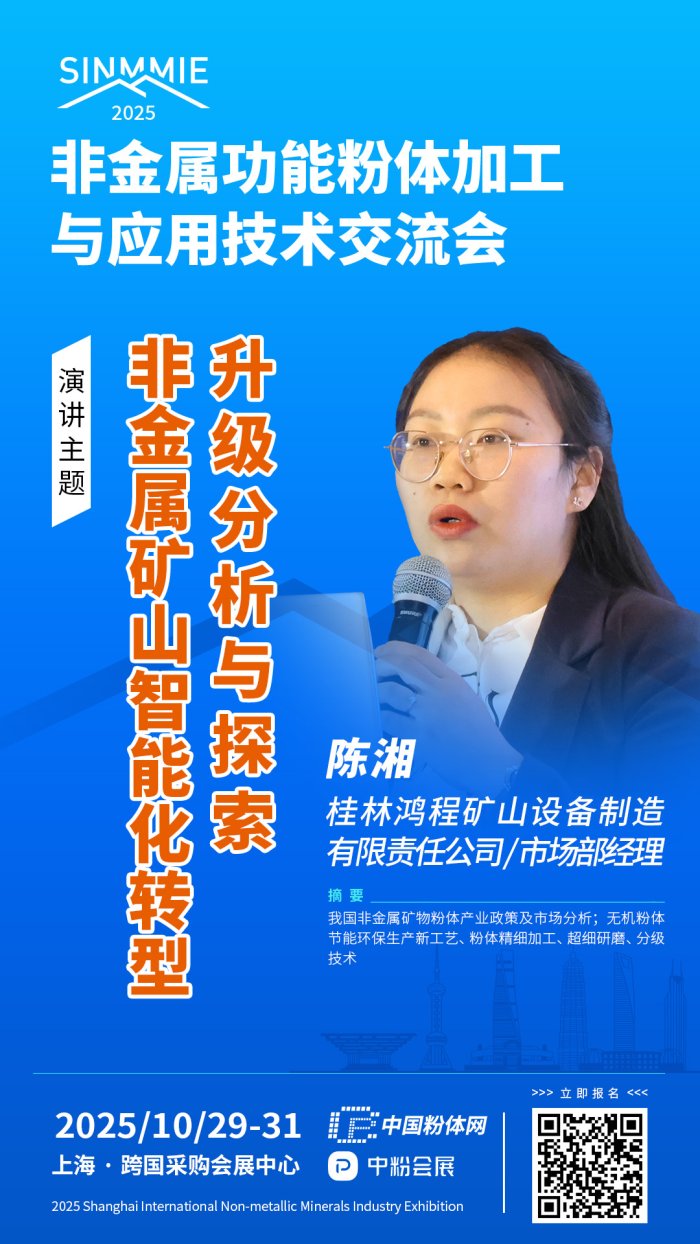 我国矿物加工自动化研究与应用相较于国外起步晚,但经过近年来的技术进步以及企业对生产效率的要求,自动化技术与智能控制技术已经应用在矿物加工的各个环节、strong>10?9-31?/span>+strong>北京粉体技术协会、柏德英思展觇/span>'/span>上海(/span>有限公司、山东中粉会展服务有限公号/span>将在上海跨国采购会展中心联合主办‛/span>上海国际非金属矿工业展览伙/span>'/span>SINMMIE2025)“/span>,展会现场将同期举办“非金属功能粉体加工与应用技术交流会“/span>,届时将邀请桂林鸿程矿山设备制造有限责任公号/span>市场部经琅strong>陈湘佛strong>《非金属矿山智能化转型升级分析与探索《/span>专题报告,分享无机粉体节能环保生产新工艺、粉体精细加工技术、超细研磨技术、分级技术、/span>