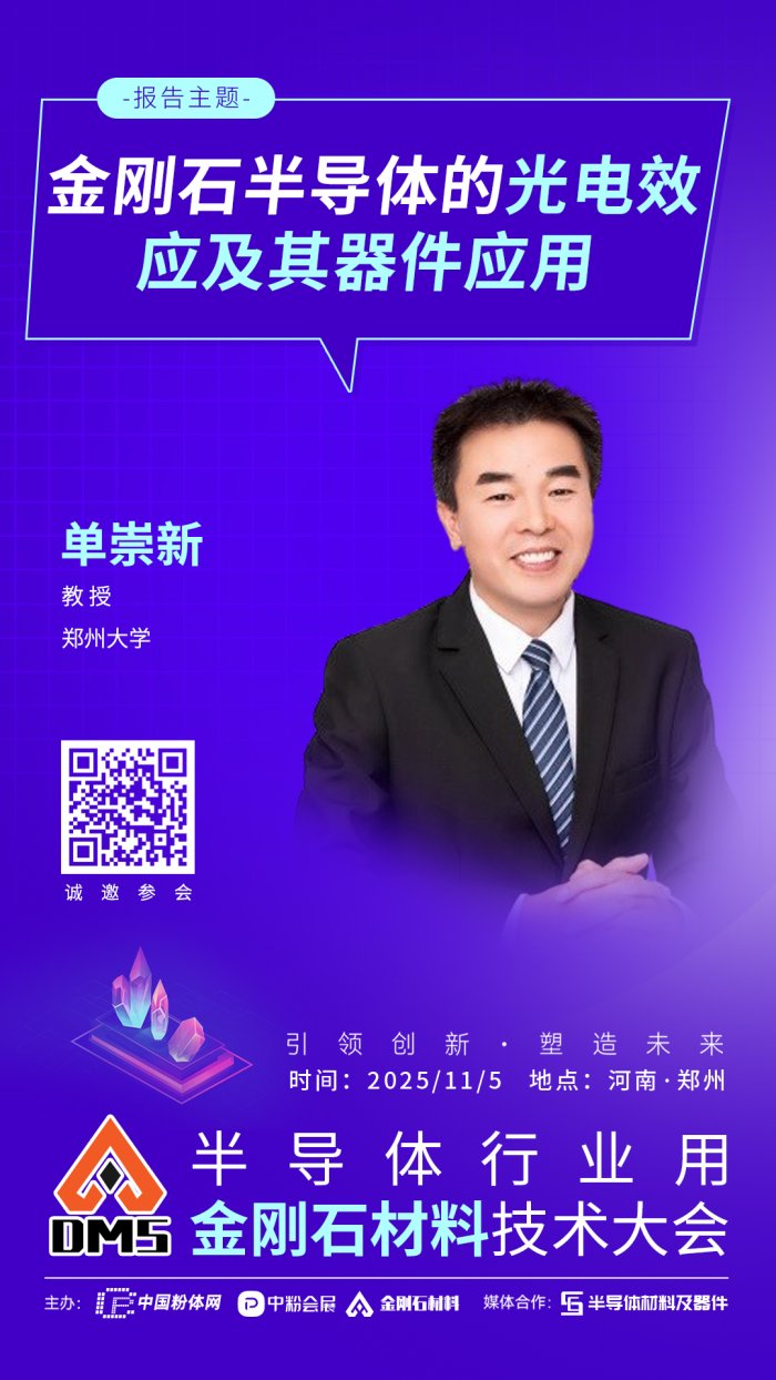 2025?1?日,中国粉体网将?span style="color: rgb(192, 0, 0);">河南?郑州举办‛strong>2025半导体行业用金刚石材料技术大伙/span>”。届时,我们将邀请到郑州大学单崇新教掇/strong>出席本次大会并作题为〉strong>金刚石半导体的光电效应及其器件应?/strong>》的报告、/p>