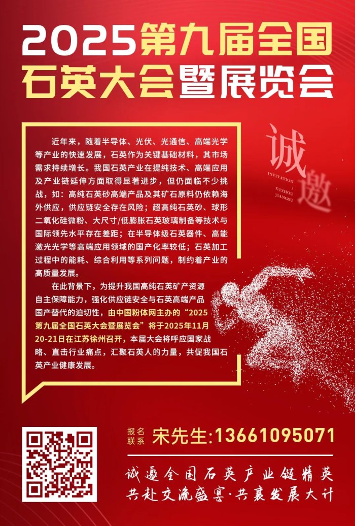 中国粉体罐/span>于将亍span style="letter-spacing: 0.578px; color: rgb(255, 0, 0);">2025?1?0-21叶/strong>?span style="letter-spacing: 0.578px; color: rgb(0, 0, 0);">江苏?/span>徐州市举办?nbsp;2025(第九届)全国石英大会暨展览?nbsp;“span style="letter-spacing: 0.578px; color: rgb(0, 0, 0);">+/span>威海市铭远环保科技有限公司邀您一同参加、/span>