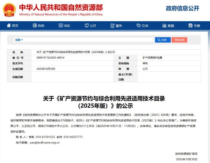 中国粉体网讯10?0日,自然资源部公示了《矿产资源节约与综合利用先进适用技术目?2025年版)《/span>,其中非金属类技?9项,涉及萤石?/span>高硅白云质灰?/span>?/span>石灰矲/span>?/span>鳞片石墨、硅灰石、煤矸石、高岭土?/span>石英?/span>菱镁矾/span>?/span>尾矿、砂石骨料等相关的高效采矿技术、高效选矿技术、综合利用技术、绿色低碳技术?/span>数字化智能化技?/span>、/span>