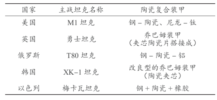 轻型的复合装甲是保持现代装备生存能力的关键。陶瓷纤维和纤维增强陶瓷基复合材料的发展是轻质复合装甲应用的基础。目前,使用的主要防护陶瓷材料有B4C、Al2O3、SiC、Si3N4等。作为公认的高性能防弹装甲材料,SiC大量用于制作防弹衣、端头帽和陶瓷装甲系统。近十年来,陶瓷复合装甲应用逐渐增长,陶瓷材料已经成为装甲防护材料的主要选择、/p>