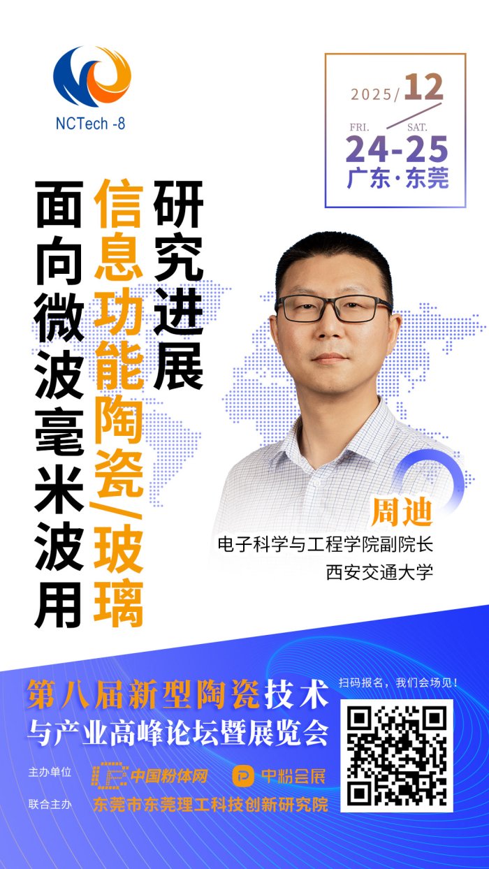 目前,有关于微波介质陶瓷低温共烧研究已经得到了广泛的关注,不同体系的微波介质陶瓷材料适用的低温共烧方法也得到了探索。在此背景下+strong>中国粉体罐/strong>将在广东东莞举办‛strong>第八届新型陶瓷技术与产业高峰论坛”。届时,西安交通大学电子科学与工程学院副院长周?/strong>将带?span style="color: rgb(0, 112, 192);">《面向微波毫米波用信息功能陶?玻璃研究进展《/strong>,报告将从微?毫米波介质陶瓷的三大性能参数入手,围绕材料的结构-组分-性能关系,介绍课题组在高品质因数微波介质陶瓷、(超)低温共烧陶瓷技术(LTCC)领域近年来的一些新颖成果,以及面向5G/6G技术微波介质陶?玻璃在具体原型器件中的应用、/p>
