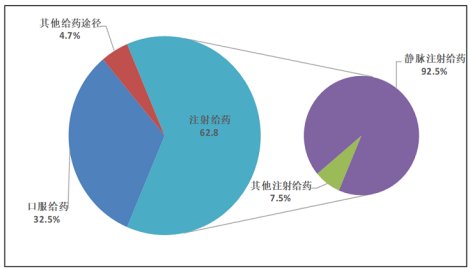 ?019?51.4万份进行统计分析,按照给药途径,可以看到注射给药占?2.8%,这其中92.5%是静脉注射给药所造成的不良反应,而其他注射给药仅?.5%、/strong>