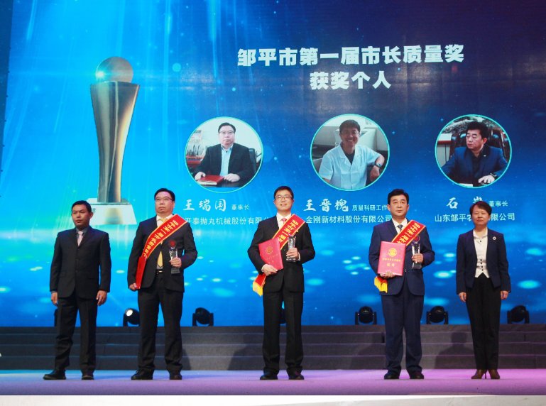 张谦在致辞中向获得第一届市长质量奖的企业和企业家们致以崇高敬意和热烈祝贺。他指出,质量是经济发展和社会进步的永恒主题,事关转型发展,事关民生民心。目前,全市拥有省长质量奖企?家、滨州市市长质量奖企?家;拥有中国驰名商标5件、中国名?个、山东名?9个。张谦强调,质量就是竞争力,是企业成长壮大、掌握行业话语权的必由之路。今天获奖的企业和企业家们,一直以来,坚持走质量为先的制造业发展道路,在质量、创新、品牌、效益等方面都取得了杰出业绩、作出了突出贡献。希望全市广大企业和企业家向先进看齐,树牢“以精立业、以质取胜”的意识;向标杆看齐,树牢“崇尚质量、追求卓越”的目标;向榜样看齐,树牢“质量第一、效益优先”的理念,把“质量观”贯穿于产品生产全过程、全周期,借势借力加快发展、br style="padding: 0px; margin: 0px;"/> 张市长要求,全市各级各部门要牢固树立“服务好现有企业就是最好的招商引”理念,坚持“主动、用心、高效”的标准,不断加强质量管理和服务,全力以赴让企业和企业家舒服。我市即将成立企业家协会、召开企业家大会、设立企业旗帜广场,表扬全市优秀企业家,营造亲商爱商重商的浓厚氛围。同时,将一如既往、坚定不移推进质量强市战略,为企业质量提升、标准制定、创新发展,提供最优服务、给予最大支持、创造最佳环境,携手企业共同把邹平打造为更具竞争力和影响力的质量高地、br style="padding: 0px; margin: 0px;"/> 颁奖典礼在开场歌舞《咱们工人有力量》中拉开帷幕,采用企业介绍、播放视频、现场采访、互动交流以及穿插文艺表演等形式进行,颁奖仪式盛大、隆重,现场气氛热烈,展示出了我市名优企业和个人的风采,也显示出了邹平市委、市政府对质量、对企业、对企业家的高度重视、br style="padding: 0px; margin: 0px;"/> 产品质量是企业的生命。为建设质量强市,推动邹平高质量发展的步伐,我市创新设立邹平市市长质量奖,用“真金白银”鼓励质量强企,以质量求突破、用质量增实力、靠质量促转型。今年的第一届邹平市市长质量奖评选一共有19家企业?名个人申报,经过评审专家组的层层筛选、严格审核,共确定市长质量奖企业5家、个?名,提名?名。为保证本次市长质量奖评审的客观性、专业性和公平性,我市特别邀请了由省内评奖经验丰富的专家组成评审小组,由评审监督小组对邹平市市长质量奖评审实施全过程监督并公开公示。最终,山东宏儒纺织科技有限公司、山东裕航特种合金装备有限公司、山东创新金属科技有限公司、西王特钢有限公司、山东宏桥新型材料有限公司荣获邹平市第一届市长质量奖。山东开泰抛丸机械股份有限公司董事长王瑞国、金刚新材料股份有限公司质量科研工作者王晋槐 、山东邹平农药有限公司董事长石岩荣获邹平市第一届市长质量奖个人奖。山东方霖铝业科技有限公司、山东恒嘉高纯铝业科技股份公司、邹平田丰机械有限公司荣获邹平市第一届市长质量奖提名奖、br style="padding: 0px; margin: 0px;"/> 金刚新材料股份有限公司,?007年建厂以来,一直秉持技术创新为企业快速发展的原动力。在质量方面,通过导入卓越绩效、精益管理等科学的质量管理方法,加强产品质量控制,持续不断地提升产品和服务的质量水平。多年来我们认识到:产品的科技含量是产品质量的核心,高科技含量是产品永久的生命力和企业持续发展的源动力。在技术方面,不断开展科研创新,打造高科技产品。技术的魅力就在于推陈出新,不断探索、不断创新。在新的时代背景下,技术研发工作更要变换思路、登高望远、落地有声、注重人才、注重发展。在品牌方面:金刚公司围绕质量核心,加强品牌培育,做品牌就像做人一样,重视品牌建设,就如一个人重视人品,品牌是个逐年累加的过程,时间长了就是招牌,就是核心竞争力。所以,生产的每一个细节每一粒产品都要精益求精,逐步增加公司品牌影响力、br style="padding: 0px; margin: 0px;"/> 个人的成长离不开公司的培养,也离不开夜以继日的苦干。在董事长的栽培下,王晋槐从青涩的学生逐步蜕变为公司技术负责人?4年的历练?4年的埋头苦干,取得今天的成绩。期许下一?4年,擘画下一个蓝图。我们企业和获奖个人无比珍惜殊荣,以获得市长质量奖为契机,继续在科技兴企的道路上一路披荆斩棘、一路高歌猛进。我们将科技创新为基,以质量为重,攻坚克难,砥砺前行,缪力同心共建企业美好明天,为邹平的发展贡献自己的力量、/p>