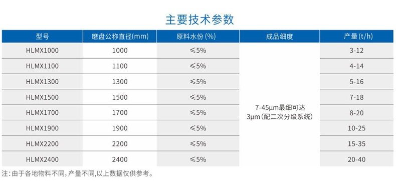 超细磨粉在无烟煤生产负极材料中必不可少,上文提到需要将其粉磨至16-18um,桂林鸿程立式超细磨粉机粉磨粒度44-7um之间可任意调节,是一款较适合无烟煤前端粉磨的机械设备,下图为桂林鸿程立式超细磨粉机的部分技术参数,供您参考、/p>