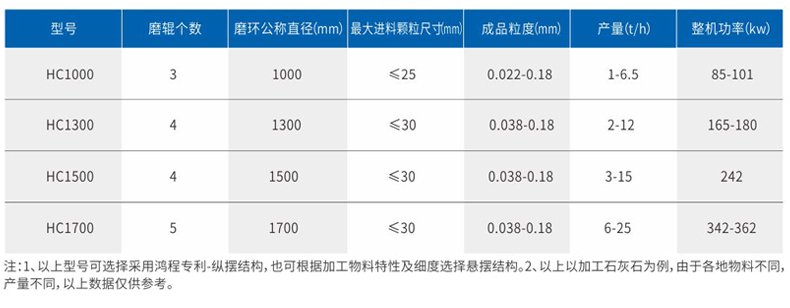 HC1700型号雷蒙机是桂林鸿程自主开发的新一代大型高效粉体磨粉机。经过技术改进了摆动方式,在不改变其他参数的情况下,离心碾压力提高近35%,完善了磨辊与磨环接触区,产量比传统5R雷蒙磨粉机高2.5?倍,粉碎效能大大提高,降低单位能耗,是广受新老客户喜爱的一款热门机型、/p>