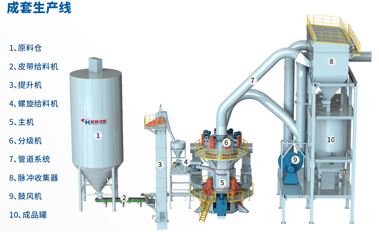 该生产线采用HLMX超细立式磨,工艺成熟、性能可靠的装备,整体生产技术、工艺装备均处于国内先进水平、/p>
