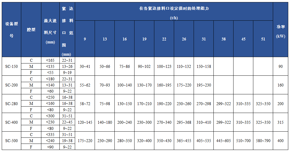 | 型号9/td> | SC多缸液压圆锥破碎朹/td> |