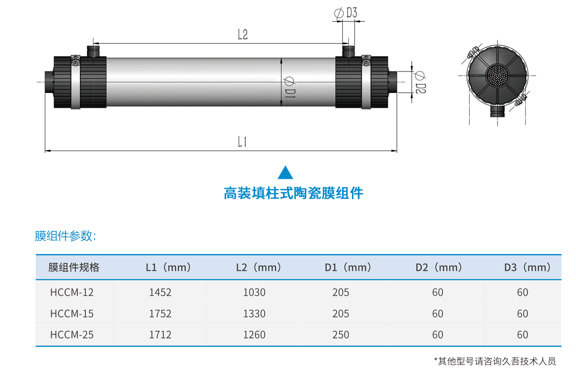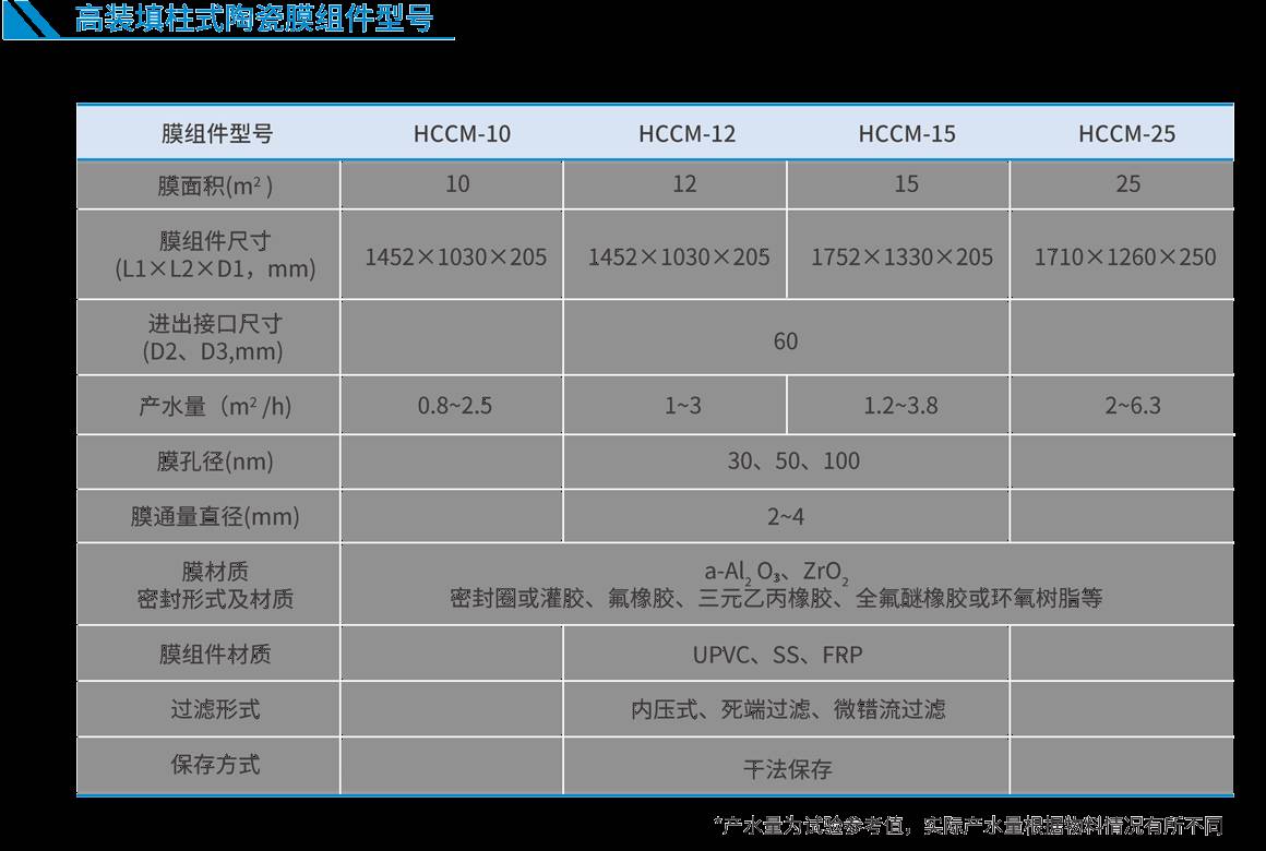 | 型号9/td> | 高装填柱式陶瓷膜 |