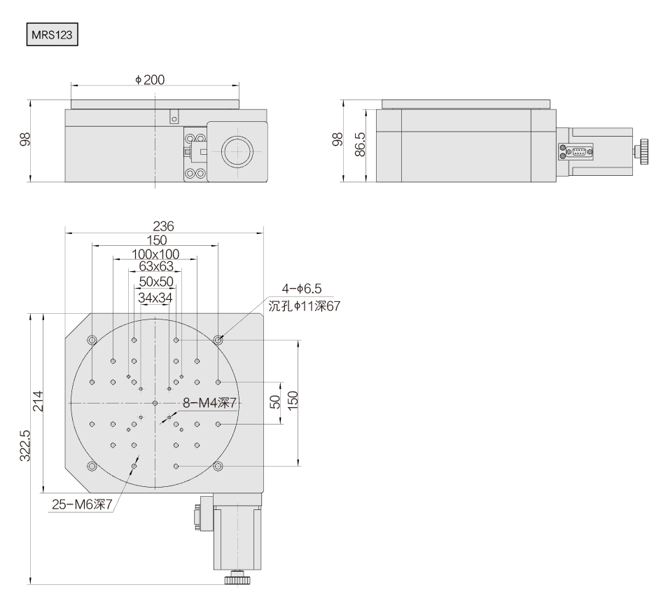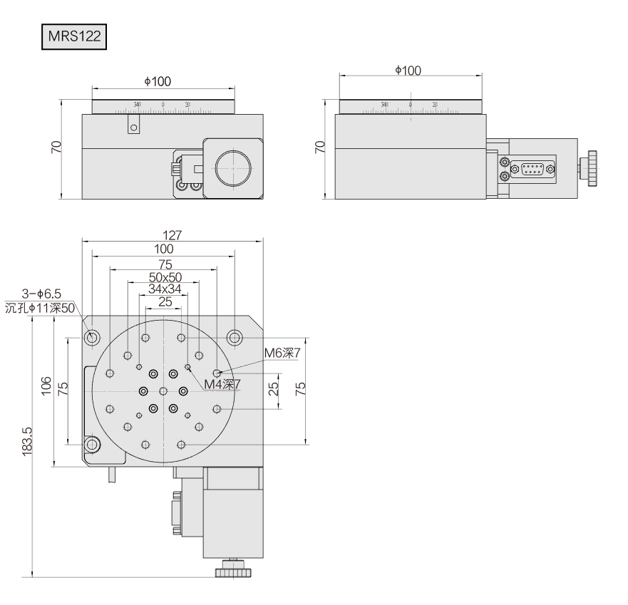 | 型号9/td> | MRS120高精度电控旋转台 |