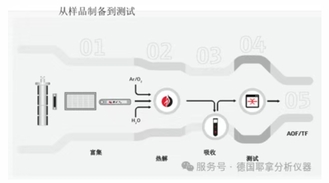 AOF的测定现在有各种标准方法对其进行了描述,包括EPA1621。该方法基于活性炭柱上有机氟化合物的富集作为第一步,然后在纯氧或氧氩气氛中在?000°C下燃烧装载的活性炭柱,加入水(热解)并吸附水溶液中形成的HF气体。在最后一步中,使用离子色谱法检测该溶液的氟含量。燃烧和检测可以在两个单独的设备(热解燃烧+IC)中进行。这意味着,所有在燃烧过程中可以加水并能够将样品气体吸收到水溶液中的高温热解燃烧系统都可以用于AOF样品制备、/p>