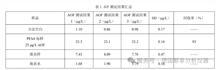 使用三个系统来测定标准品和水样中的AOF9/p>