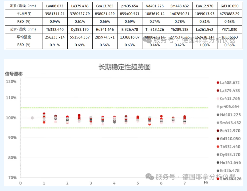 此时客户又提出担心,分析过程中光栅转动是否会影响仪器的重复性?国标GB/T36244 - 2018中要求仪器重复性≤1.5%、稳定性≤2.0%(间?5分钟,重?次测量)。Plasma Quant 9100Elite这两项的性能分别为≤0.3%、≤1.0%?小时),位于行业领先水平,远远优于国标要求、/p>