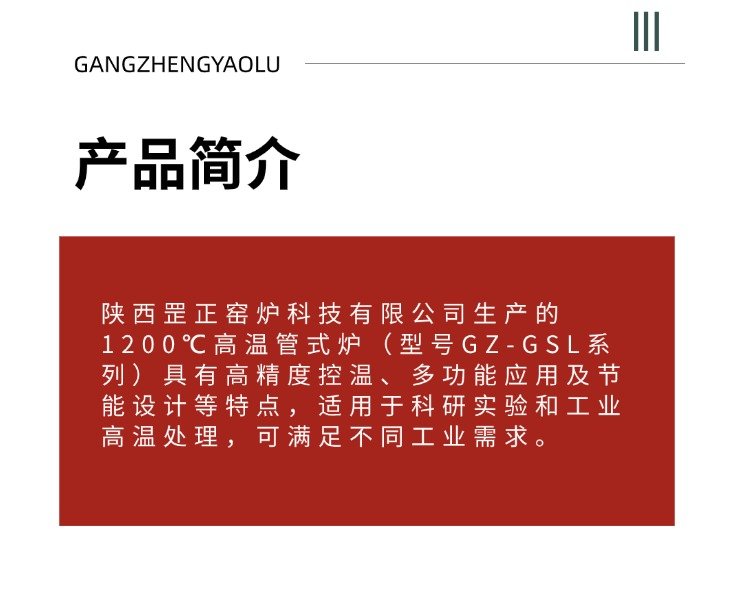 陕西罡正窑炉科技有限公司为您提供罡正窑炉GZ-GSL 1200°C高温管式炉,GZ-GSL 1200°C高温管式炉产地为陕西,属于管式炉,除了GZ-GSL 1200°C高温管式炉的参数、价格、型号、原理等信息外,还可为您提供罡正科技牌电池材料回转炉(镍锰酸锂GZ-JXn6005)、GZ-真空回转炉、GZ-LX 连续式非金属回转?罡正窑炉客服电话400-810-0069