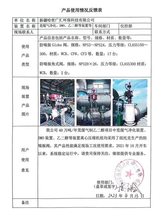 经过哈密广汇环保科技有限公司和中国五环工程有限公司的审核、批准,世界首套以荒煤气为原料生产聚酯级乙二醇的装置的核心部件——防喘振阀,由纽托克流体控制有限公司与沈鼓集团股份有限公司联合研制成功、/p>
