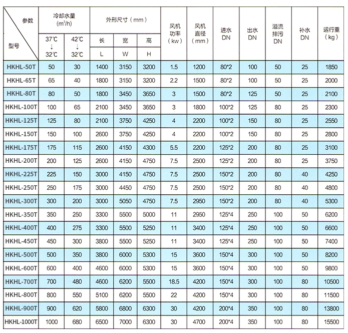 | 型号9/td> | HKL-H开式冷却塔 |
