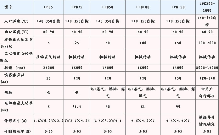 | 型号9/td> | LPG系列高速离心喷雾干燥机 |