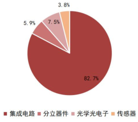 WSTS 数据?022 年全球集成电路、分立器件、光学光电子和传感器市场规模分别?,799.88亿美元?40.98 亿美元?37.77 亿美元和 222.62亿美元, 在全球半导体行业占比分别?2.7%?.9%?.5%?.8%。在上述半导体产品分布中 集成电路是技术难度最高 增速最快的细分产品 是半导体行业最重要的构成部分、br style="-webkit-tap-highlight-color: rgba(0, 0, 0, 0);"/>半导体分籺/span>