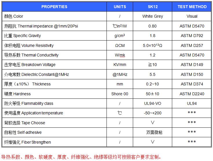 | 型号9/td> | ThermalPad SK12导热垫片 |