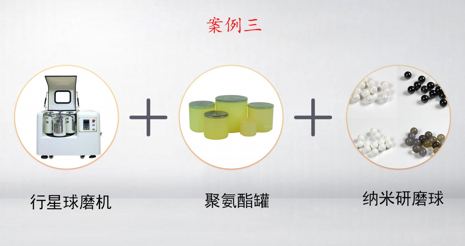 此案例特点是要分两步进行,前期通过氧化锆罐+氧化锆球的初级研磨,粉体多数进入到了15-5um之间,再需要研磨下去,会出现粘壁现象,建议此时将粉体筛出,用聚氨酯罐来做超细研磨,为何选择两步来研磨,主要的原因是陶瓷进入10um是属于粉体自身团结界点,罐比没有较高的光洁度都会让粉体粘壁,尽管氧化锆的光洁度已经够高,可依然会存在粘壁现象,而聚氨酯罐作为所有罐体光洁度最高的一个材质,具有不可替代的一个作用,且此时的研磨球配比降低到1-3mm,通过此类的方案研磨,可让粉体进入3um左右,再继续下去粉体的进度空间不大,主要还是粘壁问题,除非此类的陶瓷表面活动性较强,方可再次干磨到纳米级.