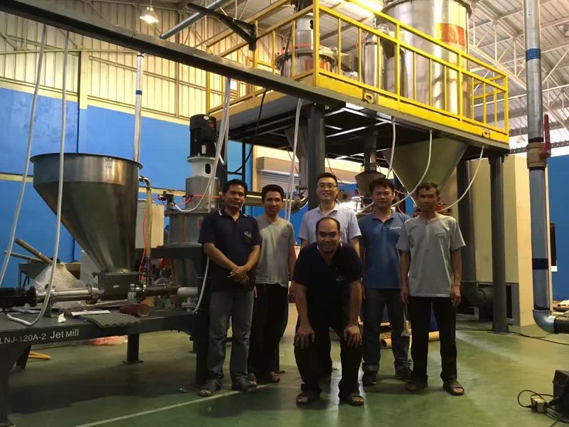为泰国客户提供的LNJ-120A-2型复印机炭粉专用气流磨在现场安装调试完成