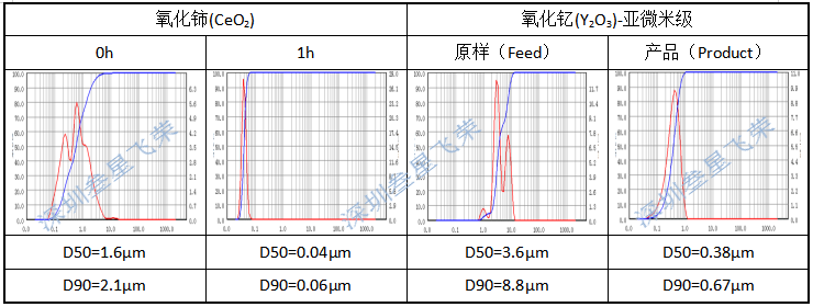 纳米稀土氧化物的制备方法主要分为物理法与化学法两种。常用的化学方法按物质形态可分为固相法、液相法和气相法。液相法(溶胶凝胶法、沉淀法、液相燃烧法、水热法和水解法等)目前使用最为广泛,但是生产成本高,即使合成后也容易产生大量硬团聚,需要借助机械外力的手段进行分散处理,特别是在某些特殊的领域(抛光与催化)。而某些合成晶体尺寸较大的颗粒若要制备纳米级细度则需要借助机械手段进行穿晶破碎,来降低颗粒尺寸。不管是解团聚亦或是破碎,现在使用最广泛的设备是叁星飞荣公司生产的具有独立知识产权的立式无机封无筛网砂磨机。下面列举部分应用实践案例、/p>