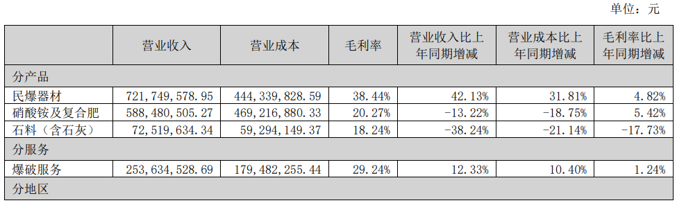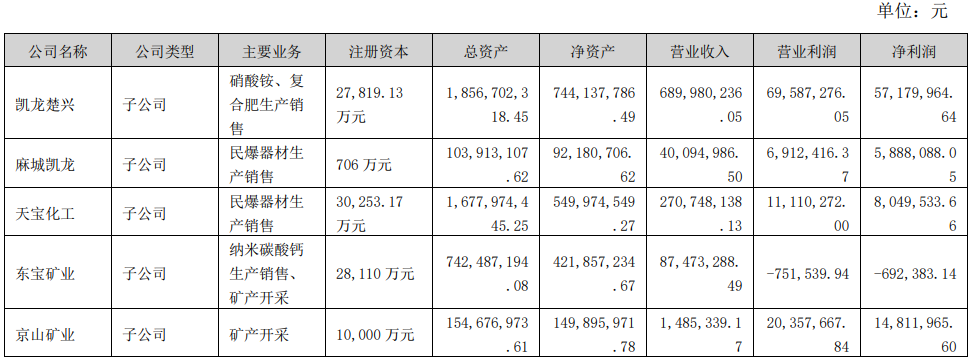 凯龙股份主营业务为民用爆破器材、硝酸铵及复合肥、纳米碳酸钙及石材产品的生产和销售,并提供爆破服务?023年上半年公司实现营业收入1,711,351,557.41元,同比增加5.05%;归属于上市公司股东的净利润?11,998,840.00元,同比减少6.99%、/p>