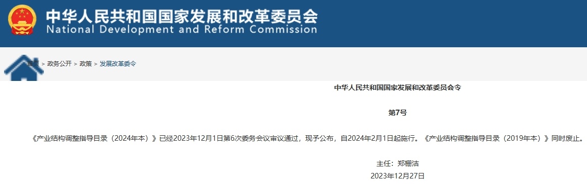 中国粉体网讯据悉,《产业结构调整指导目?2024年本)》已?023?2?日第6次委务会议审议通过,并正式公布,自2024??日起施行。《产业结构调整指导目?2019年本)》同时废止、/p>