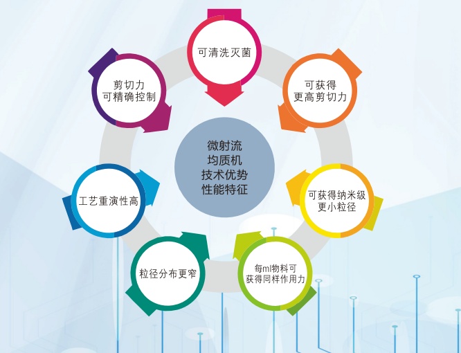 微射流均质技术是一种新型纳米制剂制备技术,可用于纳米乳、纳米粒、脂肪乳、纳米混悬液、LNP纳米脂质体等纳米制剂的制备。微射流均质机作为微射流均质技术的主要载体,在食品、药物递送、药物制备、化妆品、精细化工、覆铜板、纳米新材料、新能源材料、染料等领域应用广泛、/p>