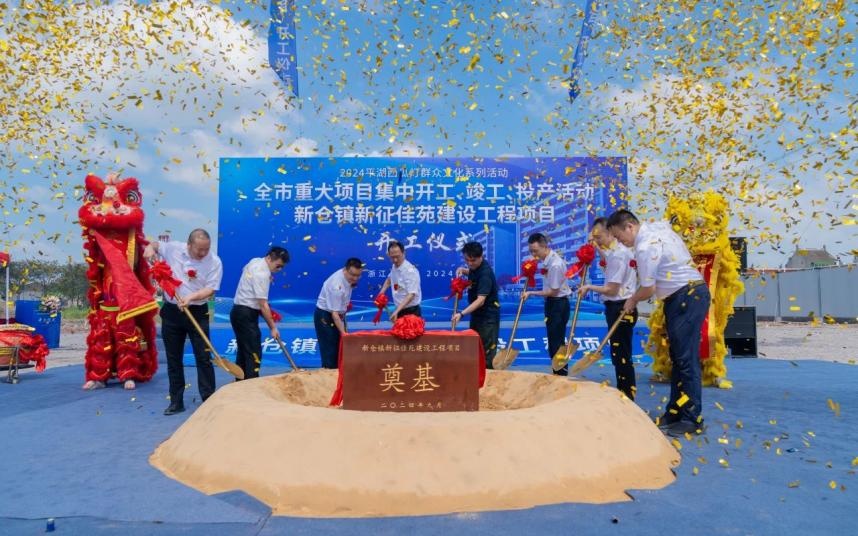 9?2日,新仓镇举?024平湖西瓜灯群众文化系列活动全市重大项目集中开工、竣工、投产活动暨新征佳苑建设工程项目开工仪式、/p>
