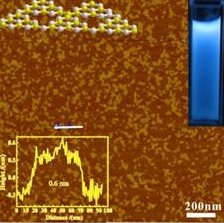 最近,天津大学化工学院杨全红教授课题组采用纯水为介质,结合水浴超声与杆式超声,通过减小石墨相氮化碳纳米片的尺寸,增加边缘位点所占比例,实现了单层石墨相氮化碳纳米片的高效剥离(~30%)。通过这种方法得到了横向尺寸约为55 nm、厚度约为0.6 nm的单层石墨相氮化碳纳米片(NMGCNs)。由于其纳米级尺寸及单层片状结构,NMGCNs表现出比大尺寸纳米片和量子点更优异的光响应特性。NMGCNs的水分散溶液具有良好的稳定性能和优异的荧光性能,其荧光量子产率可达32%,所以可用于细胞荧光成像。此外,NMGCNs表现出比多层石墨相氮化碳纳米片更优异的可见光催化性能。独特的小尺寸及单层超薄结构使得NMGCNs在传感器和光电子等领域都具有潜在应用前景。