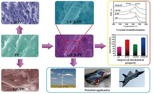 此外,科研人员还首次考察了将玻纤增强和β成核剂调控结晶行为相结合制备聚丙烯复合材料中,玻纤和β成核剂对改性PP的结晶行为和力学性能的影响,揭示了增强纤维与基体树脂界面粘附性能的机理,发现了玻璃纤维增强可弥补β成核剂改性对PP刚性带来的损失,大大改善其综合力学性能。相关研究成果于近期发表在国际刊物《英国皇家化学会进展》(RSC Advances)上。