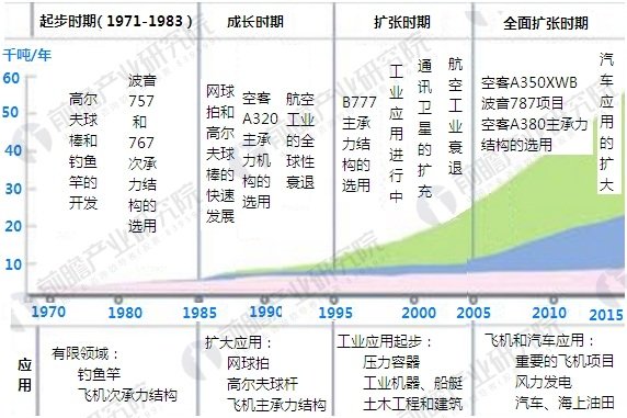 www.188betkr.com 讯我国碳纤维工业的起步可以追溯到1962年,总体上与日本碳纤维的研发同步进行;2005年,我国碳纤维行业仅有10家企业,产能之和占全球总产能的1%;2008年,以国有企业为主的大量工业企业涌入碳纤维行业,但大多数企业在一些关键技术上无法突破,生产线运行及产品质量极不稳定,导致“有产能,无产量”的现象出现;2010年,国内碳纤维生产能力仅占世界高性能碳纤维总产量的0.4%左右,碳纤维需求严重依赖进口。