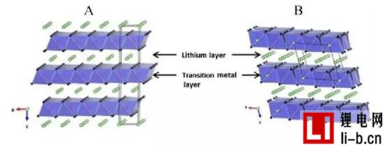 富锂锰基正极材料在循环过程中,由于材料充电后会形成晶格缺陷和元素元素价态变化,导致循环稳定性存在严重不足。目前认为“层到尖晶石相变”是电压衰减的主要原因之一(图3)。由于层状和尖晶石相的不同之处在于锂和过渡金属阳离子如何排列在每个金属层中,因此层到尖晶石结构的相变表明过渡金属迁移必须参与该相变过程。