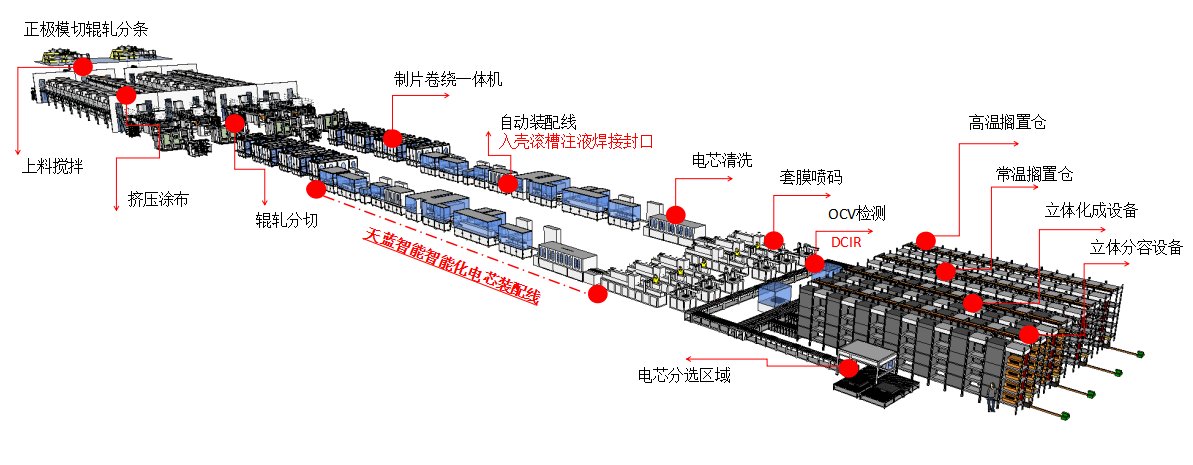 电芯的装配阶段,能否完美的结合电池厂家的工艺,能否实现高效稳定的电芯装配,是电芯生产实现量产化的极为重要的一环。而天蓝智能的智能化自动化电芯装配线便是这方面的佼佼者。