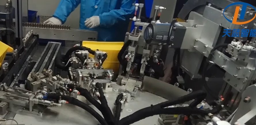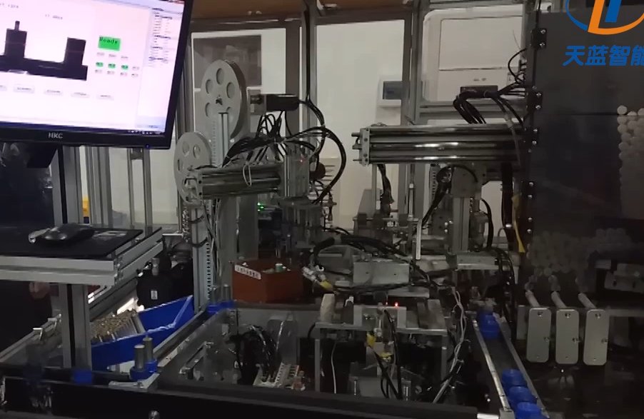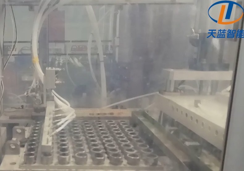 电芯入壳——既电芯装入钢壳的过程。天蓝智能的入壳机,采用功能模块化设计,配备多功能图像识别、360%无极激光测控技术以及柔性输送线,可实现单机双工位凸轮连杆传动,兼容单双极耳卷芯,确保无损伤同轴导向入壳。