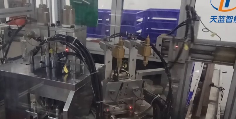 电芯注液——既将电解液注入电芯。电解液就像电芯身体里流动的血液,能量的交换就是带电离子的交换。这些带电离子从电解液中运输过去,到达另一电极,完成充放电过程。电解液的注入量是关键中的关键,如果电解液注入量过大,会导致电池发热甚至直接失效,如果注入量过小,则又影响电池的循环性。天蓝智能的注液机,强调了注液泵内的循环系统,具备注液管路自助清洗以及自助补液功能。点对点的气密性检测,为生产精度的进一步提升提供了新动力。
