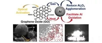 这一发现利用氧化石墨烯作为一种有效的轻质添加剂,而在实际的高能应用中通常使用微米尺寸的铝粉(Al),即直径为百万分之一米的铝颗粒。